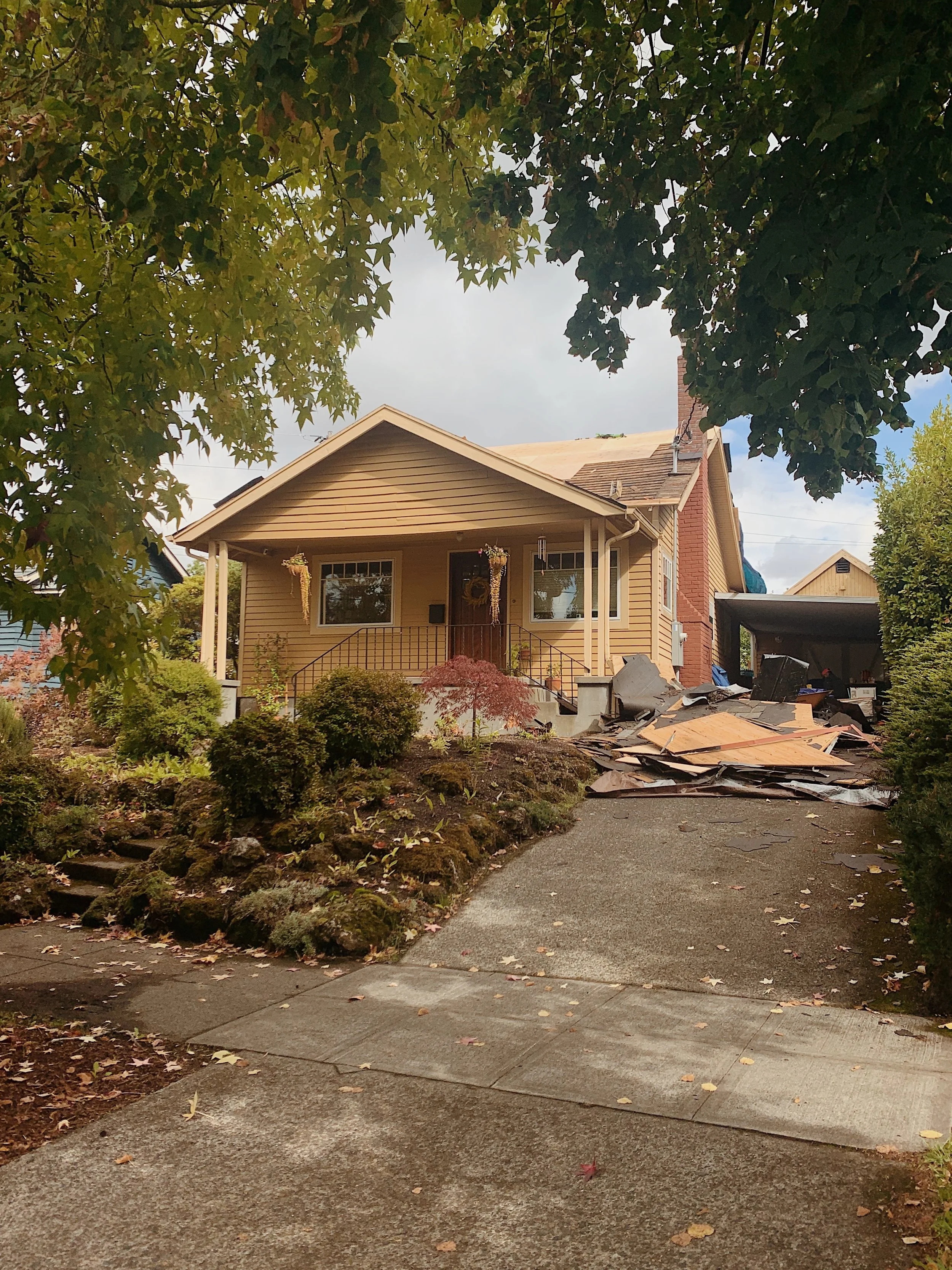 Back to the roof: About a year ago we started getting quotes for the roof because we knew this enviably would need to be replaced. Initial quotes were pretty basic but as we got further in it turned out that we need to do a FULL tear off and start from scratch. After meeting with FIVE roofers we settled on working with All Surface Roofing. Peter, the estimator seemed to be super honest and non-pushy. He even told us a year ago that we didn’t need the new roof right away and should hold out until plywood prices dropped. We continued to speak with him over the course of months and felt like we were making the right decision to go with them. They weren’t the cheapest quote we received but also wasn’t the highest. The company checked out, they had a good reviews, and had no hits against them. Everything was going smooth until the first day…